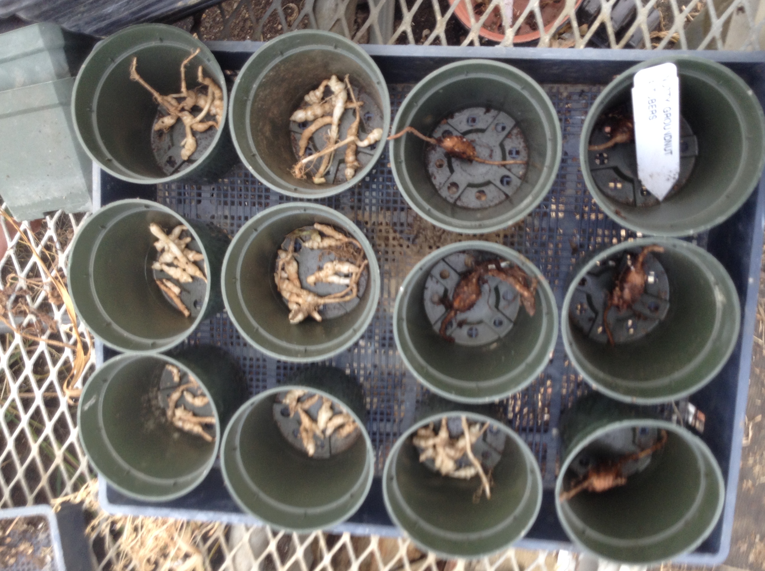 As I mentioned, I plan to start a new patch of Three Brothers, and since I am just starting to kill the grass (via Group and Conquer!) where I am going to put it, I am planting the Chinese Artichokes and the new groundnuts I have in pots, and will plant them in the spring — or whenever the grass is dead. The Jerusalem Artichoke is already there, which is stronger than grass anyway, so I’m not worrying about it.