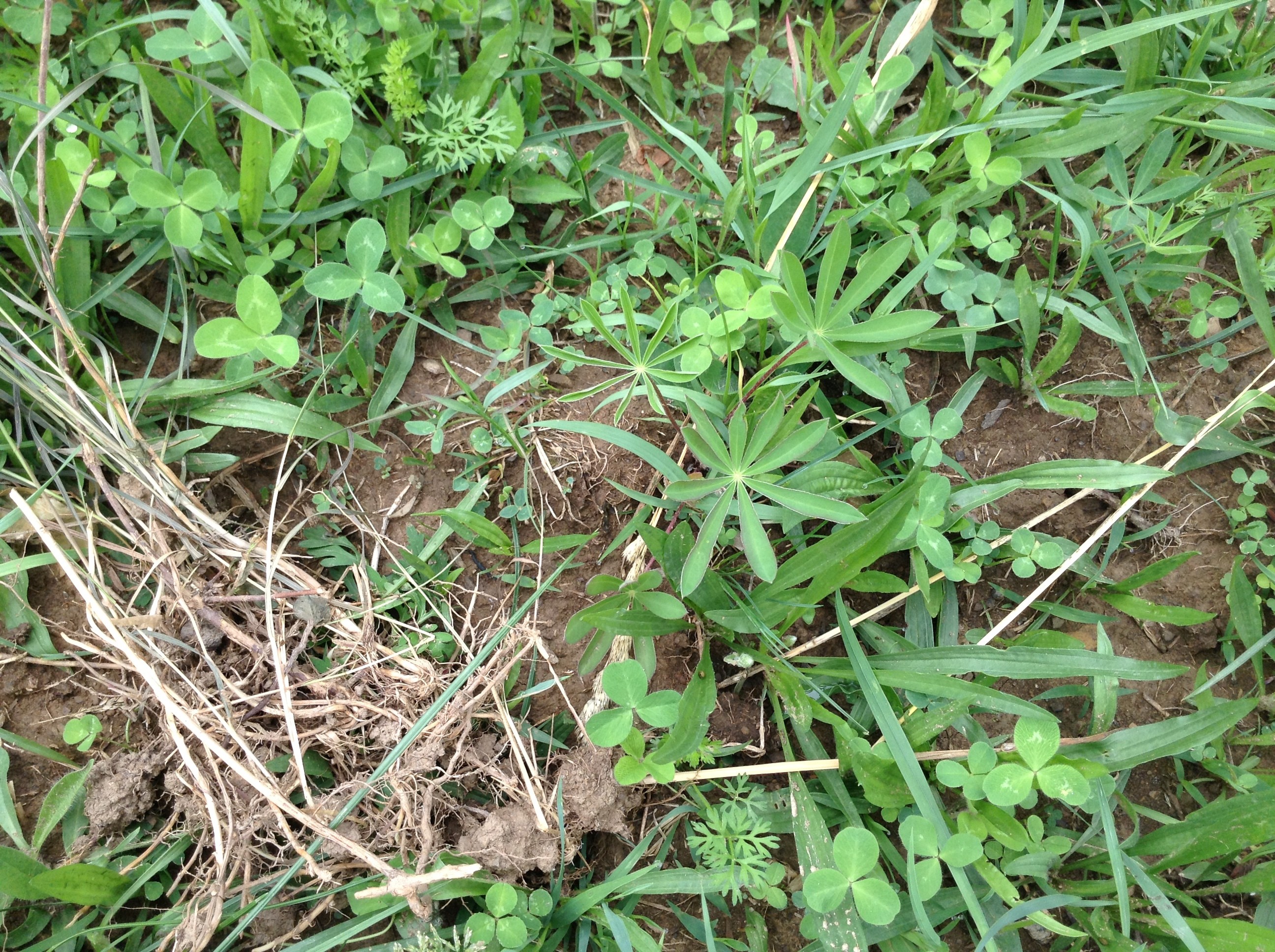 Disturbing the ground made it easier to rake in the seeds of oats, peas, lupine, phacelia, bell bean, but it also roused the weeds from their subterranean slumber. It worked out that neither did very well in the upper part because the dirt was bad.