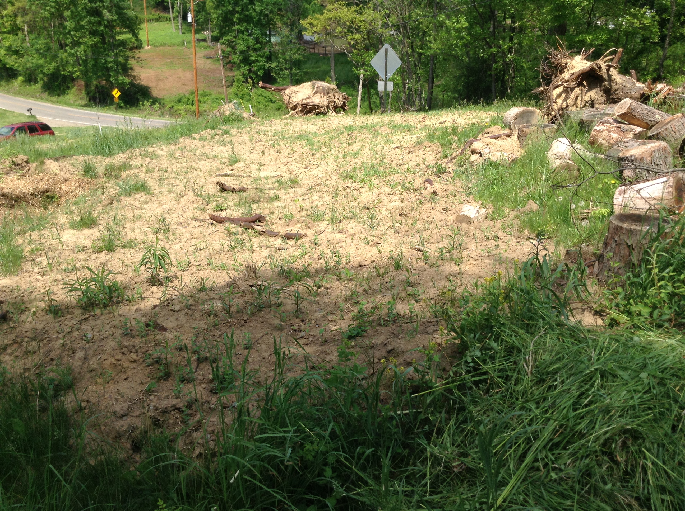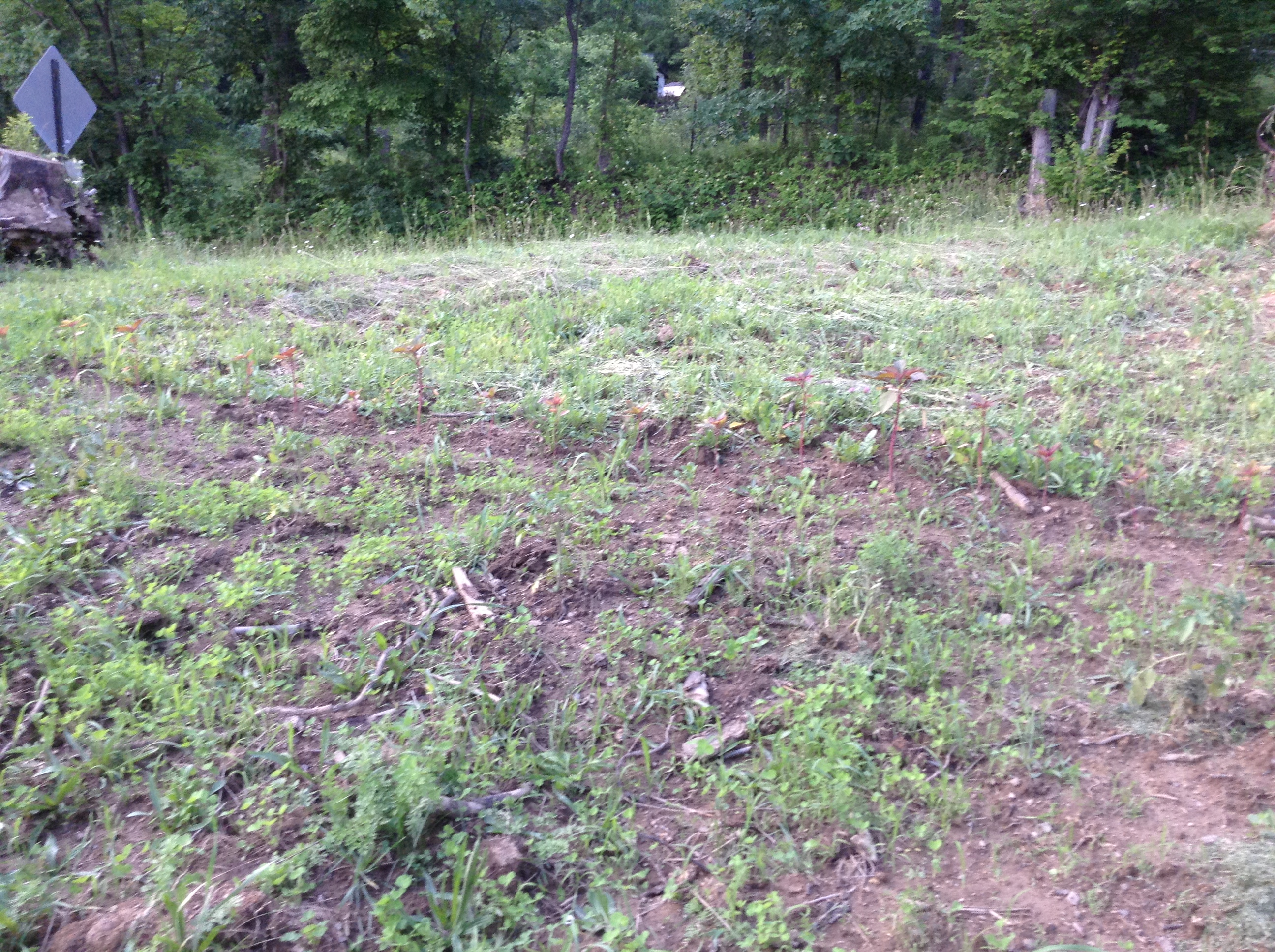 Getting my grain patch established has been sort of rough compared to other parts of the food forest. Of course, the original plan was extensive compared to what I did in other parts of the food forest. I took out some cherry trees that were growing in the grain patch site. I wanted a terrace. Some other places I wanted to slightly slope down to a ditch for mushroom growing and general water collection as I mention in Stropharia firstfruits.