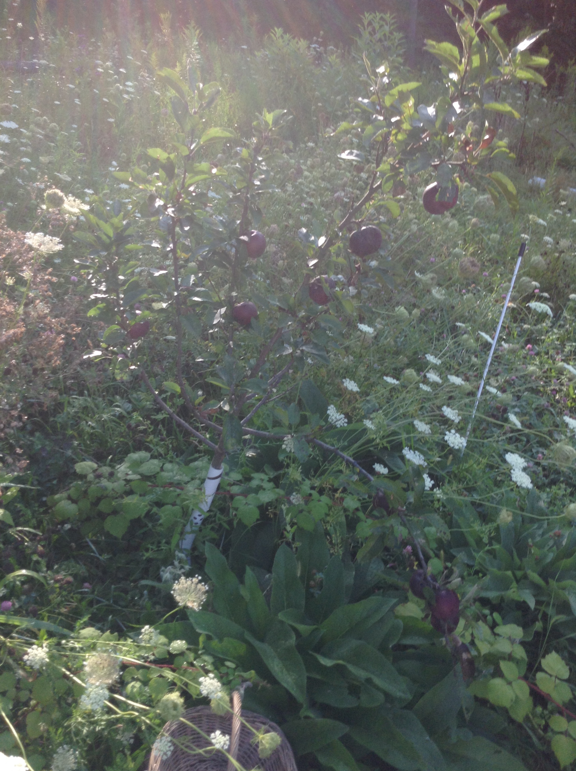 The biggest, most perfect apple on this tree left with a deer this morning. I figured if they’re ripe enough for the deer, they must be ripe enough for me. I estimate that one apple would have pushed the total weight well over 5lbs though.