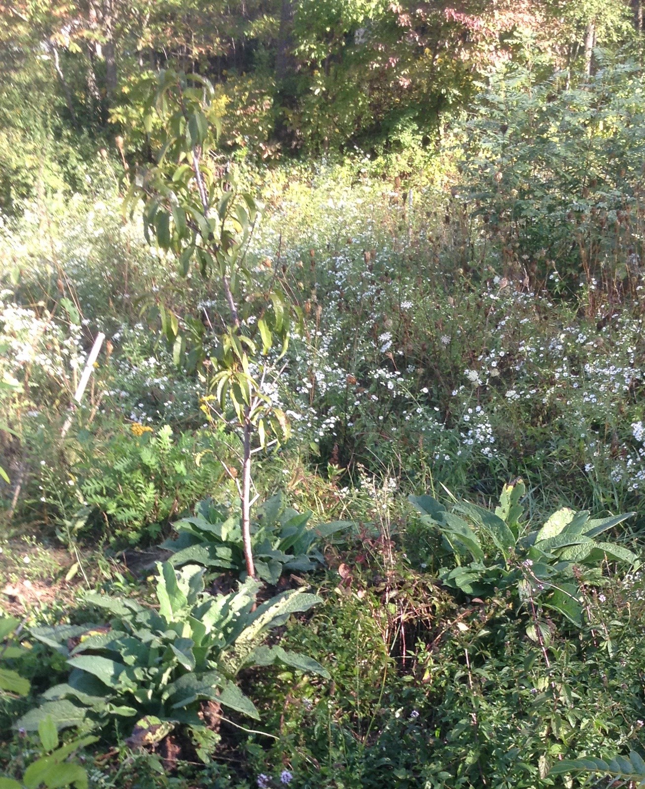 It’s standard in my food forest that every tree has its companion comfrey or two (or three). Most have three around them in a triangle to keep the guild mulched with living and decaying leaves.