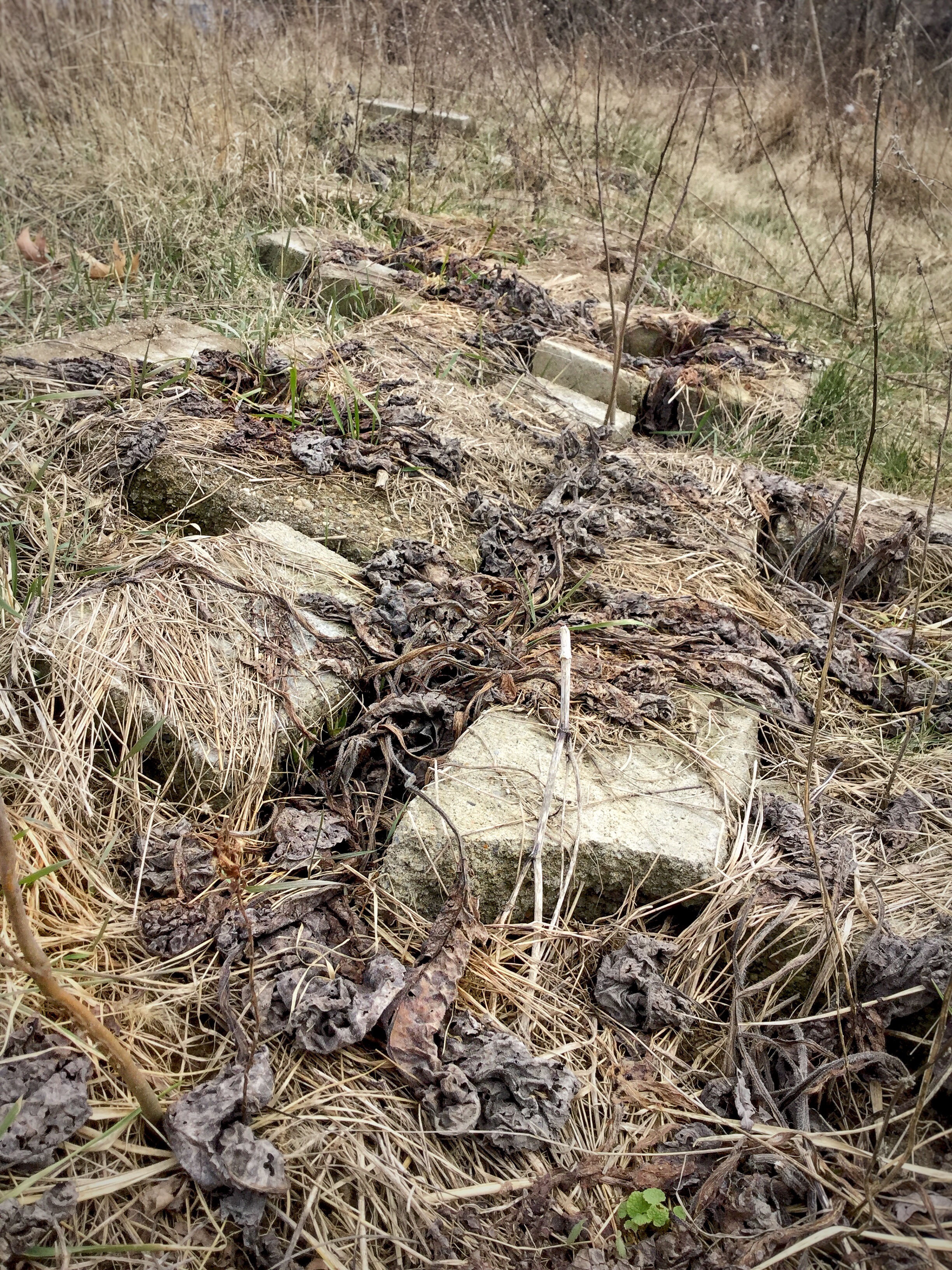 I also tried covering a small part with grass mulch in May last year, and this took care of any weeds growing through the cracks. Below is the planting now. Like most fun times, there is a mess to clean up afterwards. This bed had a lot of fun last year. What you see is actually mulch I applied, the healthy comfrey, and some amorpha interplanted. I plucked out the little bits of green quackgrass, and look forward to some very lush, beautiful growth here come summer.