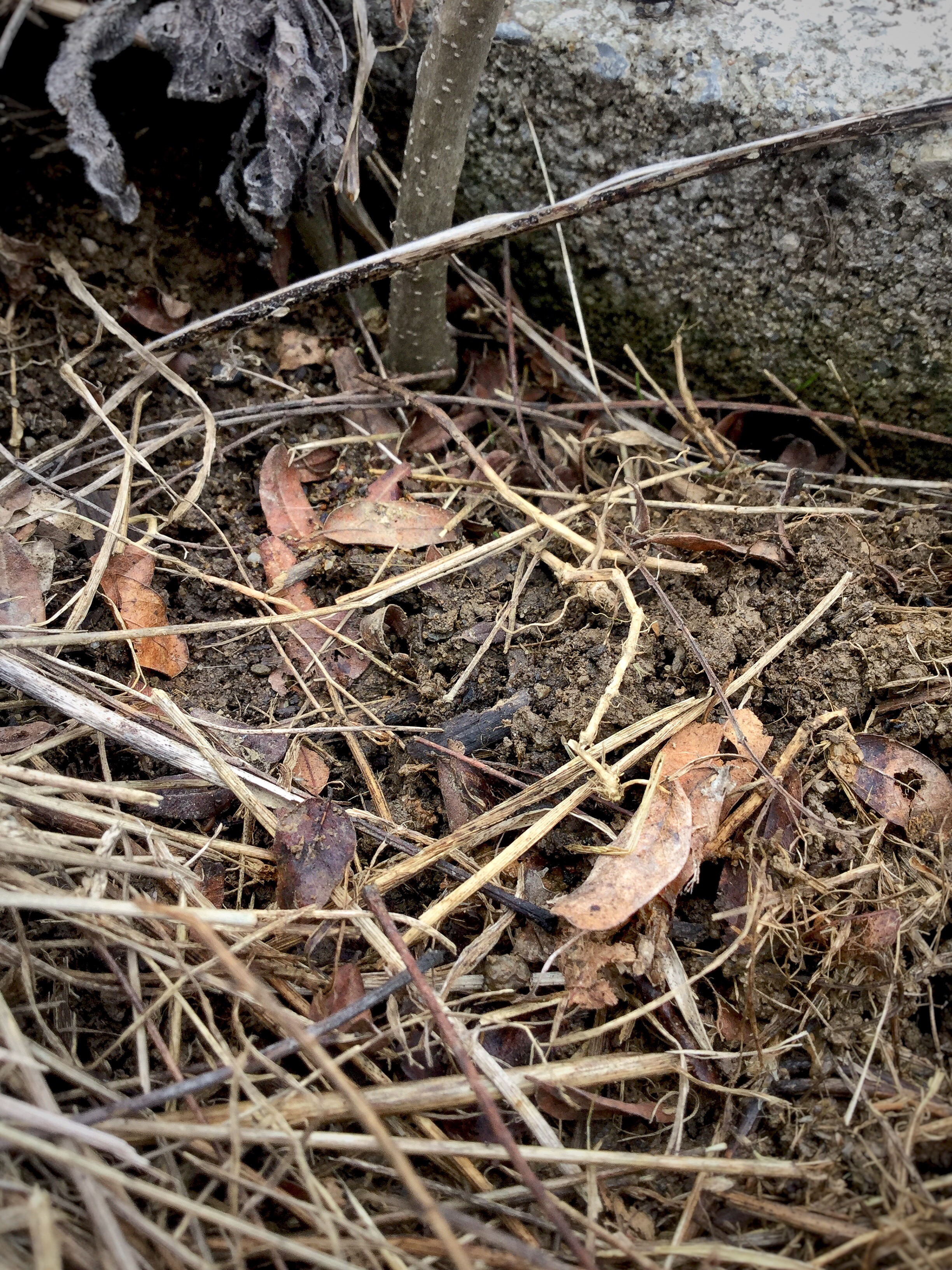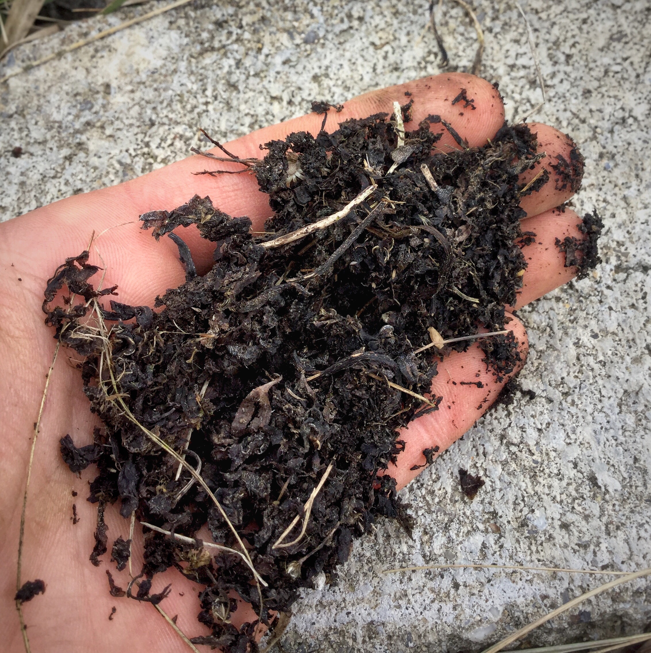 Pictured is some broken down comfrey from a larger patch in the food forest. This new patch should be producing similar soil in the near future. It’s already well on its way.