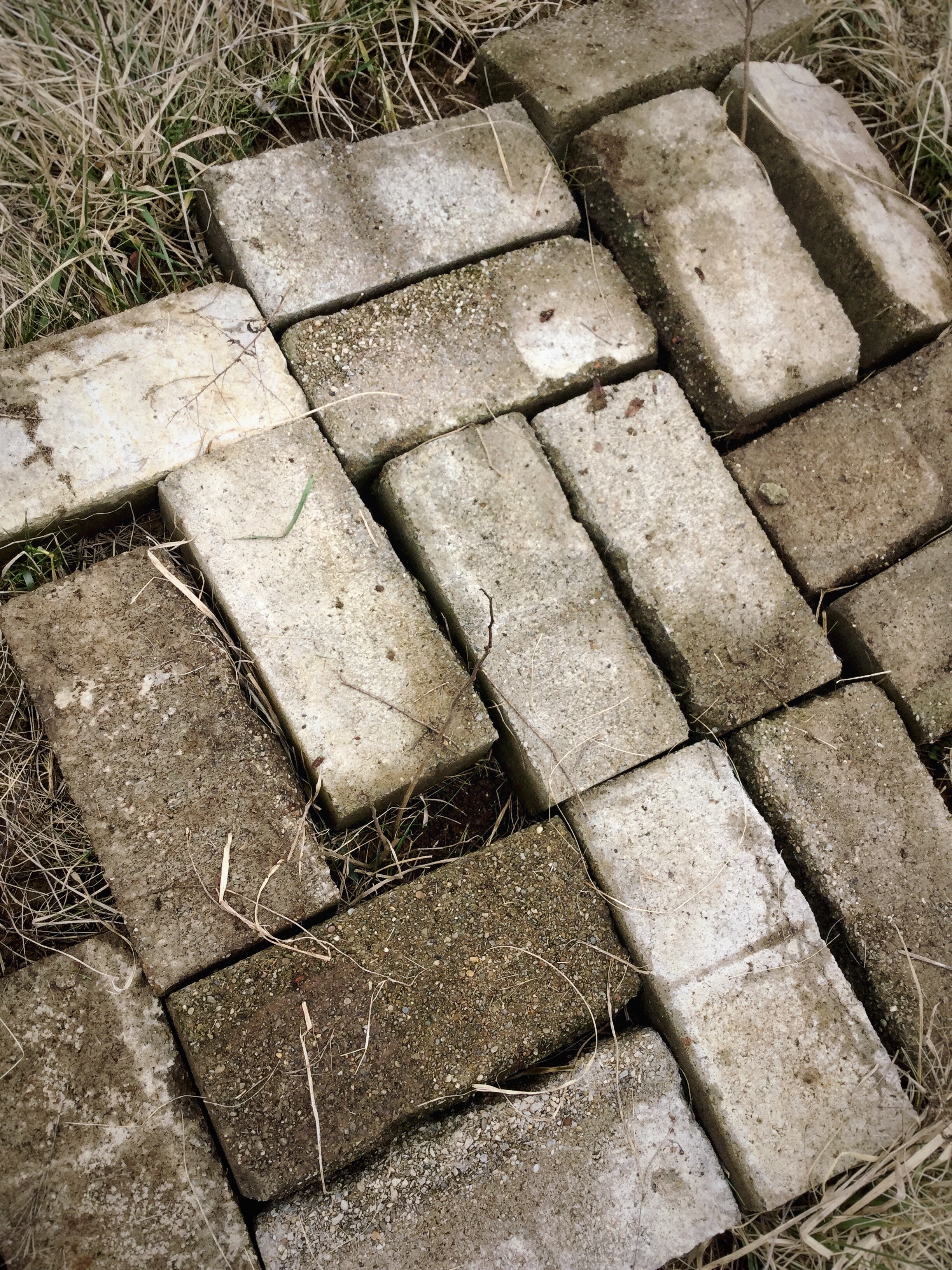 I plucked out the quackgrass when I shifted the rocks. Because they block sun and moisture loss, the rocks encourage the quackgrass to grow shallow, allowing me to just pick them up rather than pulling them. What roots did grow deeply are easily pulled because the soil is so soft under the bricks.