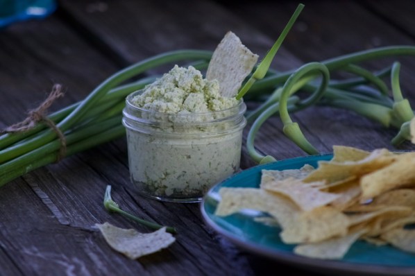 They taste the same as garlic, just a little less potent. Which is why they work perfectly in pestos, dips, and more lovely recipes! They taste great in place of green onions and garlic in a dish as well.